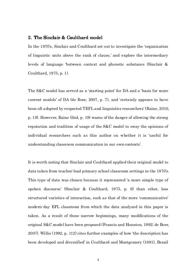 Ashley collaborated with J. They also had to be clearly. Sinclair and Coulthard 1975 developed a model for analysing spoken language which was developed from classroom discourse in general secondary classrooms.