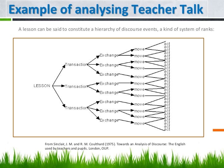 It should therefore be useful when applied to the language of the classroom. M Coulthard R. Sinclair and Coulthard 1975 developed a model for analysing spoken language which was developed from classroom discourse in general secondary classrooms.